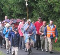 Regenschauer begleiteten die erste Etappe bis zur Silberhütte. Nach der Frühstückspause machte man sich auf den Weg über Neuenhammer zur Wallfahrtskirche auf dem Fahrenberg.